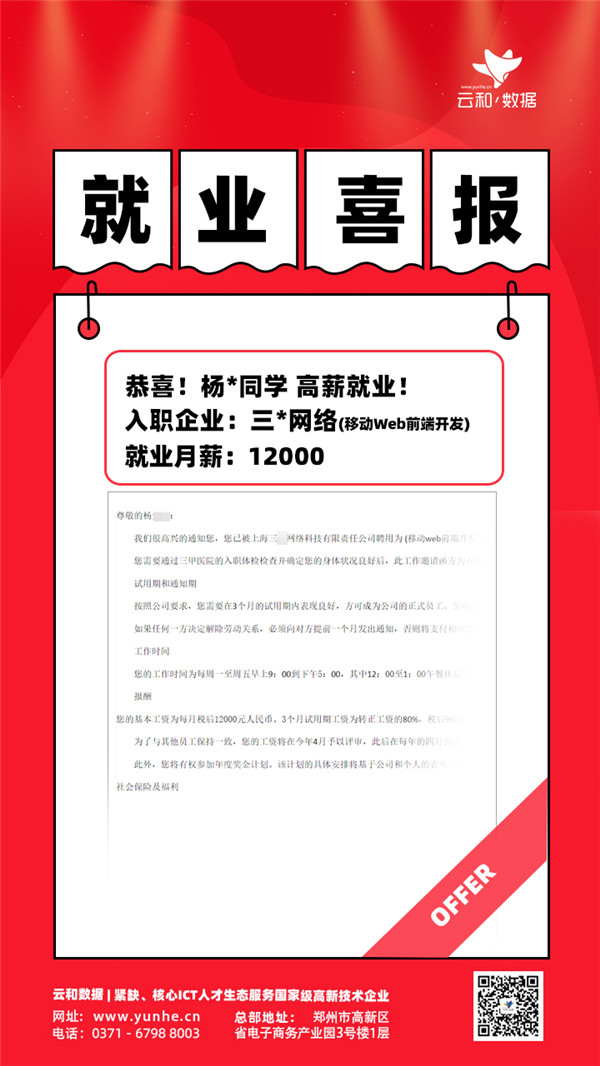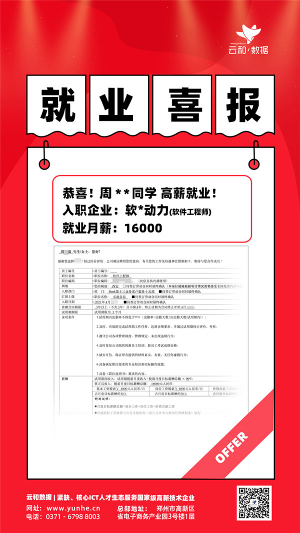【云和数据更好的就业】努力永不过时,向前就有风景;千磨万击还坚劲,高薪offer走一程;云和数据的同学们都是最棒的!