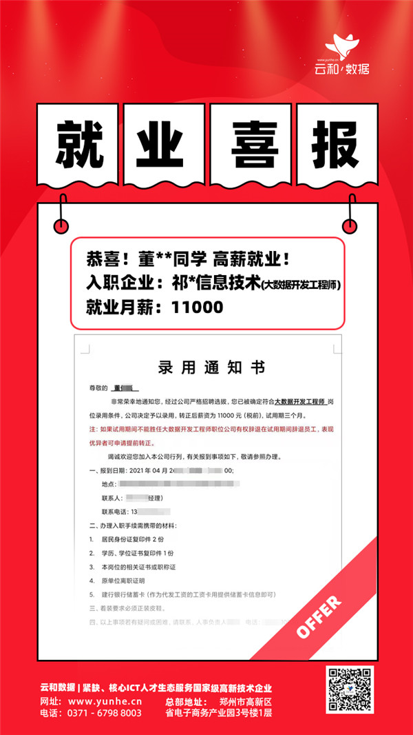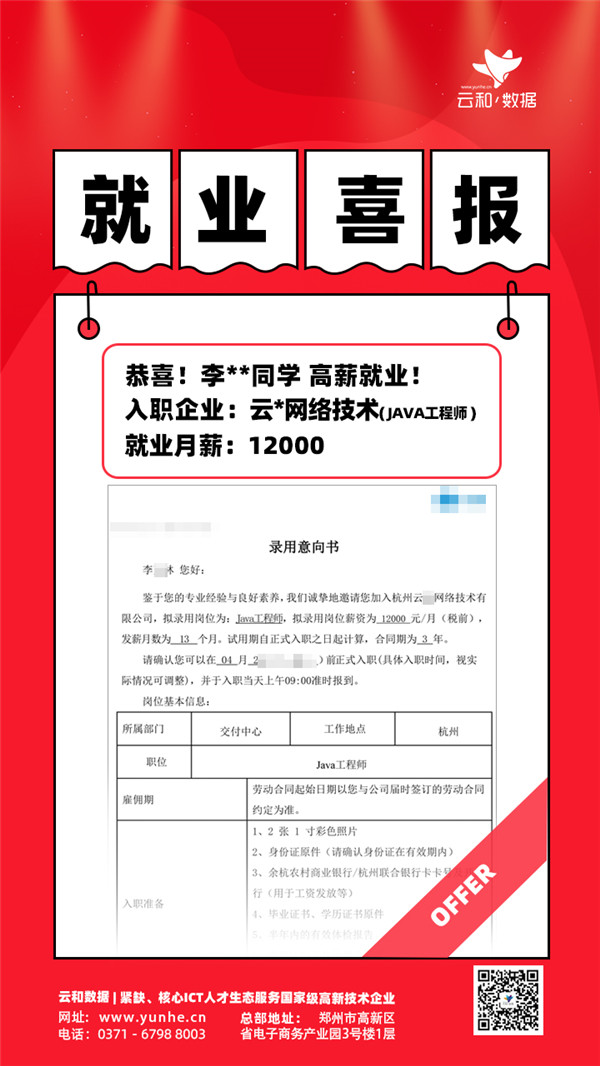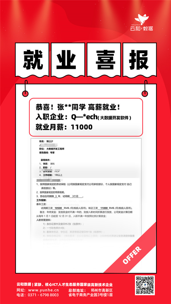 【云和数据学员更好的就业】 毕业即拿高薪OFFER 更有企业上门面试最高16薪,双休,入职缴纳五险一金,每年2次调薪!你还在等什么?