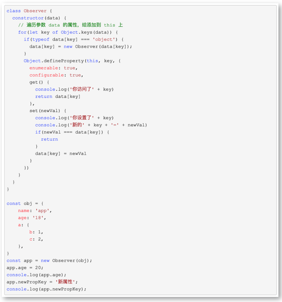 Vue2 中,对于给定的 data:如 { count: 1 },是需要根据具体的 key 也就是 count,去对 get 和 set 进行拦截,也就是: