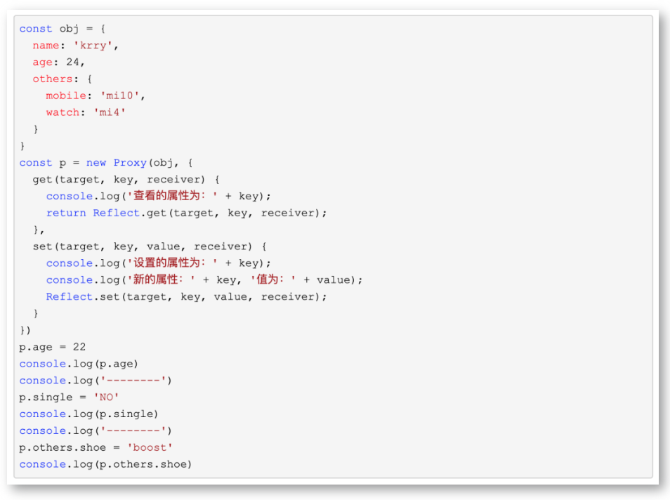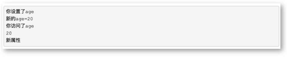 也就是无论访问对象的什么属性,之前定义的 或是新增的 属性,都会走到拦截中进行处理。这就解决了之前所无法监听的问题。
