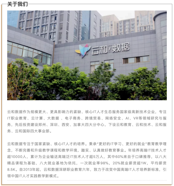 云和数据作为华为官方认证授权培训中心、华为ICT学院授权中心,在华为认证人才培养方面具有雄厚的实力和丰富的经验。未来,云和数据将积极做好华为ICT学院服务支撑工作,用心培育更多的ICT技术人才,为华为公司生态系统输送更多新鲜的血液,同时,也为广大想要进入ICT行业的人群提供专业的学习机会和有效的认证通道。