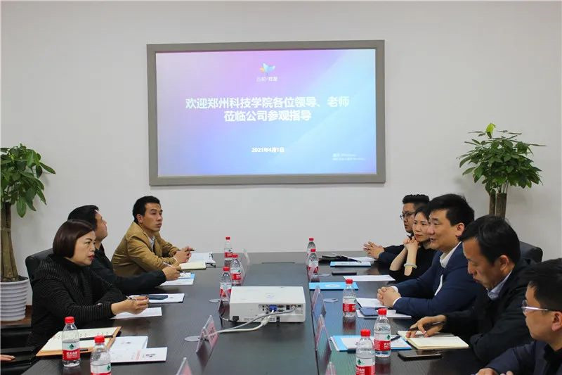 参观结束后,双方领导移步会议室,双方领导就郑科院泛IT学院运营情况、世界职业技能大赛“云计算项目”、开展省级重点现代产业学院建设、2021郑州软件人才“码农”培育计划、专业共建、人才培养计划、师资交流、立体式课程建设、实训室建设等校企合作内容作深入探讨并达成多点共识。