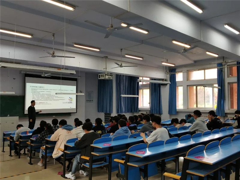 陈总详细介绍了世界技能大赛的相关知识,包括大赛项目、中国与世赛、各级政府奖励措施等方面,陈总分析了世界技能大赛对我们青年人发展的重要性,大大激励了在场学生的积极性。