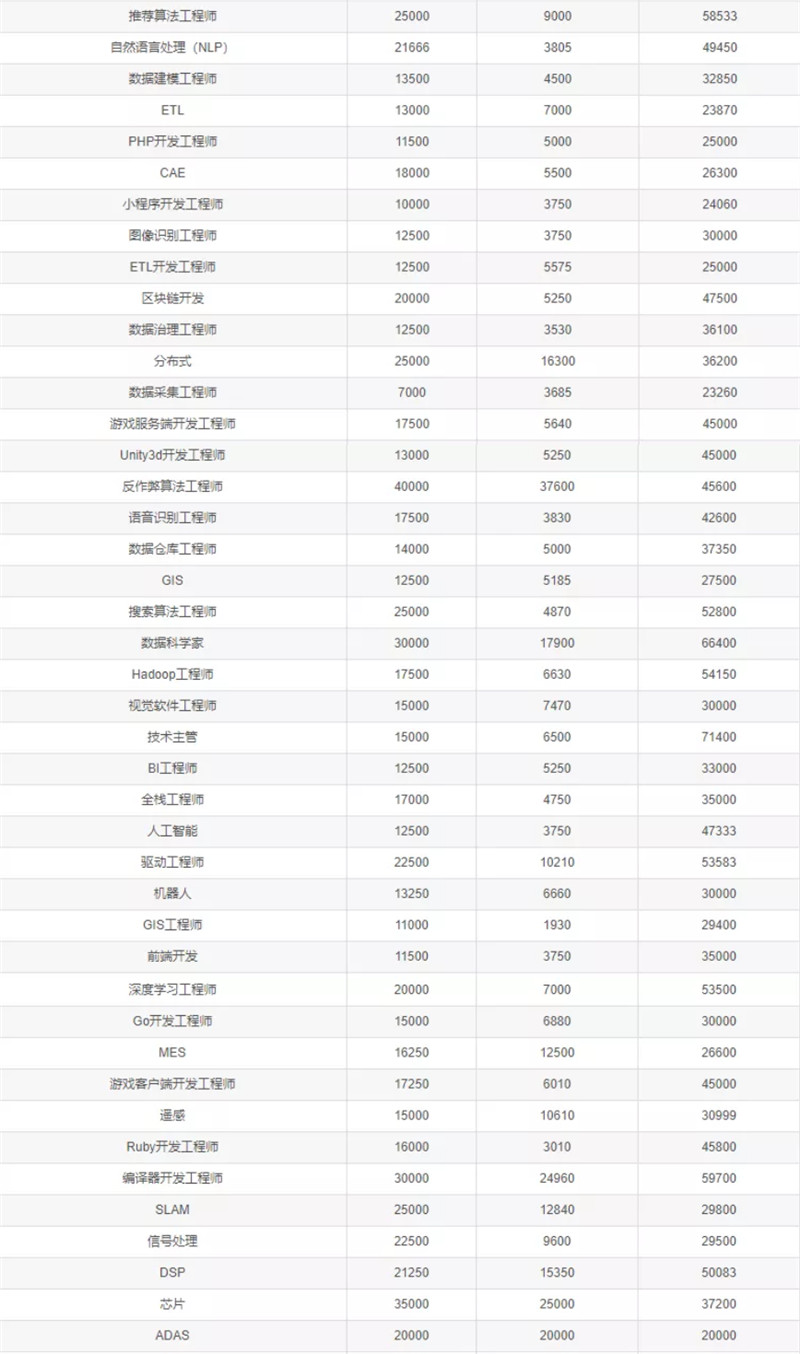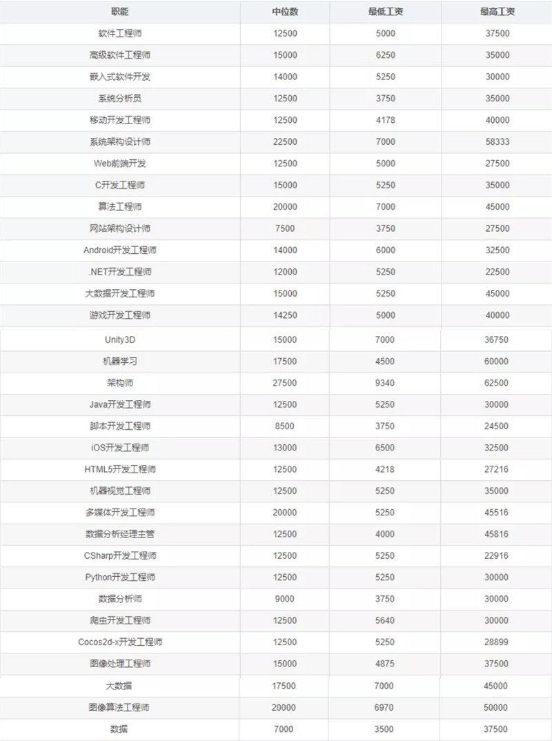 程序员不同岗位具体收入情况