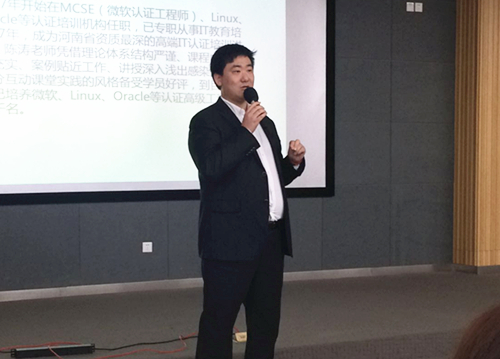 首先我们和蔼可亲的陈总代表公司致开幕词,热烈欢迎同学们的到来!陈总可谓是IT界的“元老”级人物,已专职从事IT教育27年,成为河南省资质最深的高端IT认证培训讲师。跟着陈老师上课的小伙伴们可享福喽~~