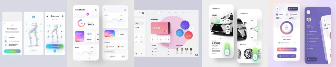 在 UI 设计领域,还有的设计师会使用双色渐变,并且结合模糊效果,让它更加柔和。
