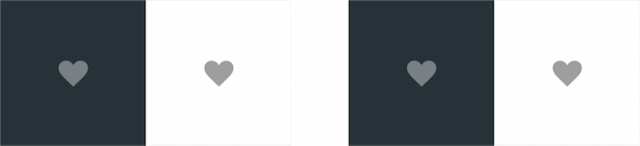 △ 左:图标不符合色彩对比度建议。 右:图标遵循色彩对比度建议,从背景中清晰可辨。